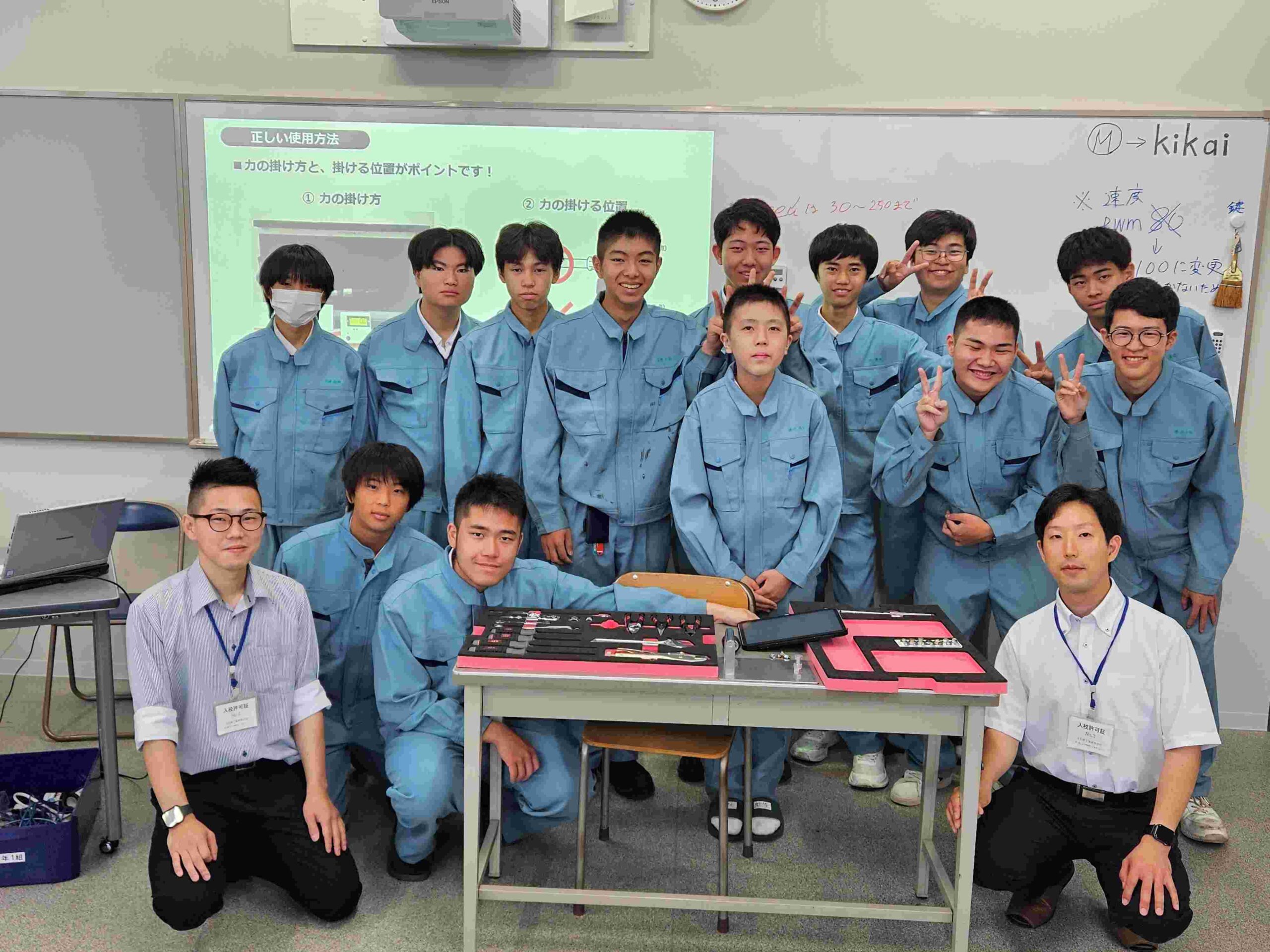 日本自動車教育振興財団(JAEF、佐藤恒治 理事長)は、日本自動車整備振興会連合会(日整連)と連携し、高等学校への教育支援として整備技術の出前授業を行っている。8月1日には、名古屋市昭和区の名古屋工業高等学校で、機械科1年生13人を対象に授業を実施。(写真=授業に参加した生徒ら)愛知県内では今年2校目となる。
