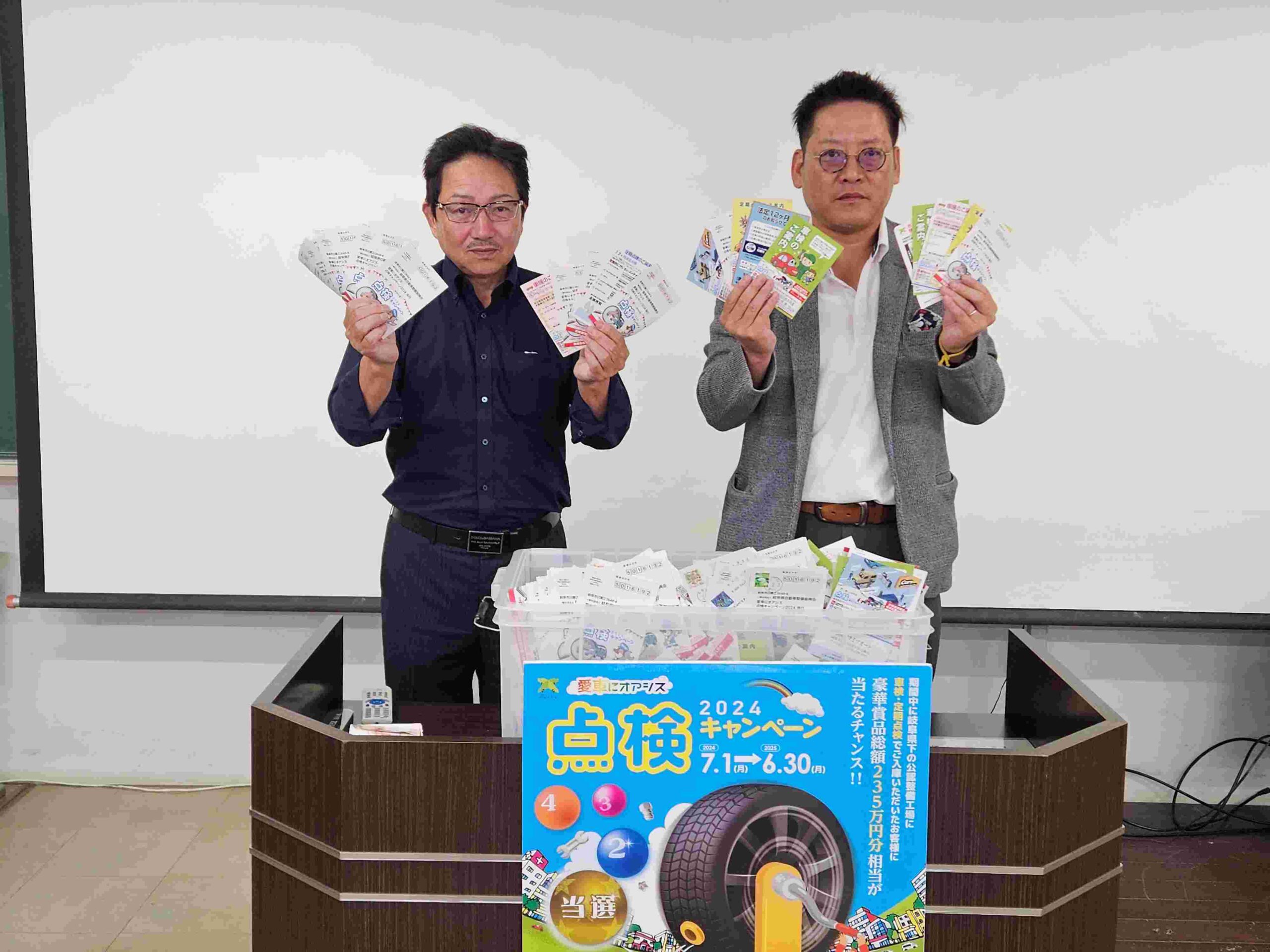 岐阜県自動車整備振興会(田口隆男 会長)は7月25日、岐阜市の同整備振興会館で、点検整備入庫促進企画「愛車にオアシス・懸賞キャンペーン2024」の下期(第2回)抽選会(写真)を実施した。年間応募総数は2万8823枚(前年比99・4%)となった。