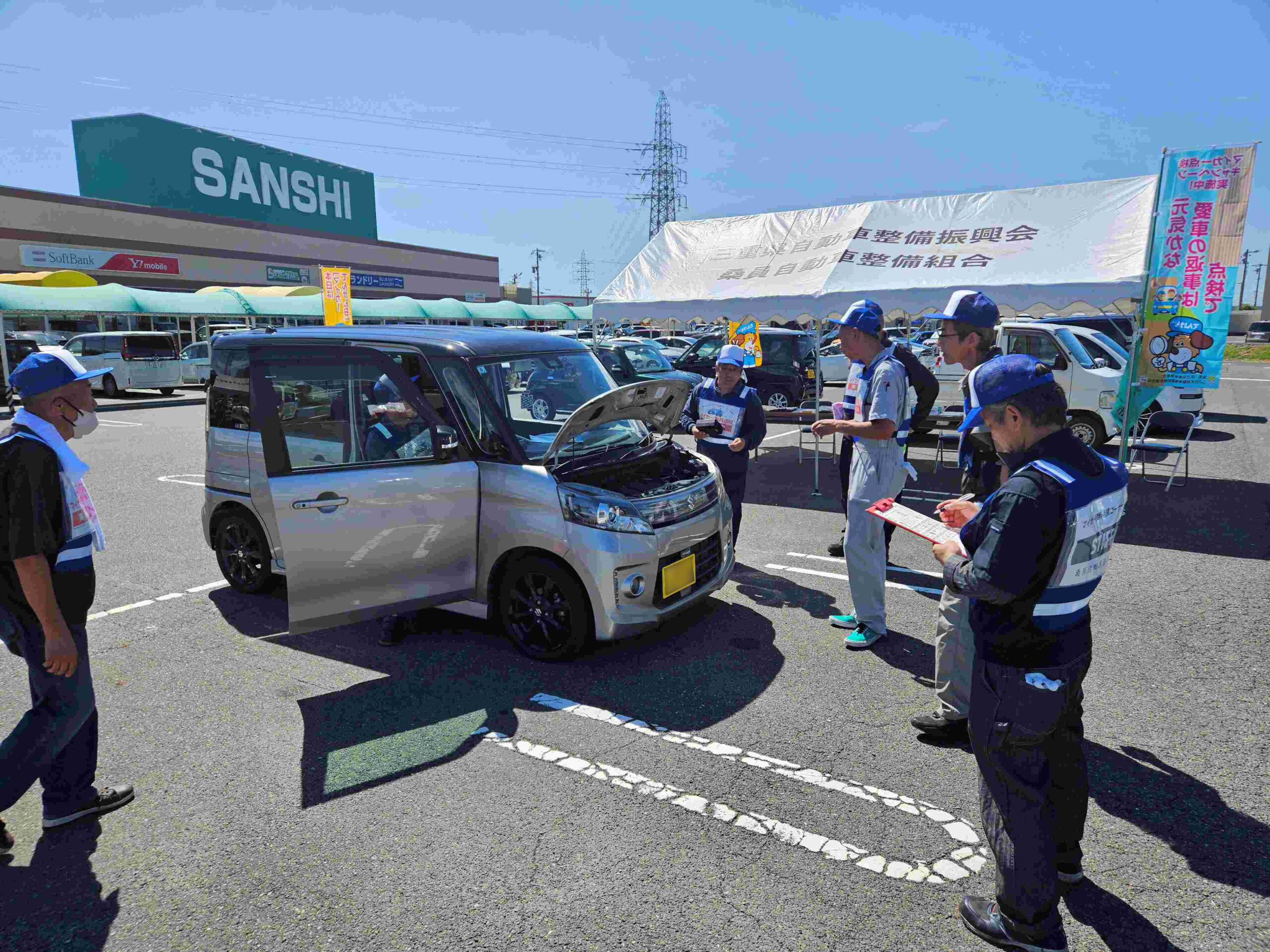 三重県自動車整備振興会(竹林武一 会長)は「マイカーてんけん日」の9月6日、地区整備組合(協会)が主体となって県内4会場で一斉に「マイカー無料点検コーナー」(写真=桑員自動車整備組合が桑名市のスーパーサンシ桑名店で)を実施した。6日の無料点検は、桑員、津安芸、名張、熊野の4組合が地元スーパーの駐車場などで開催した。