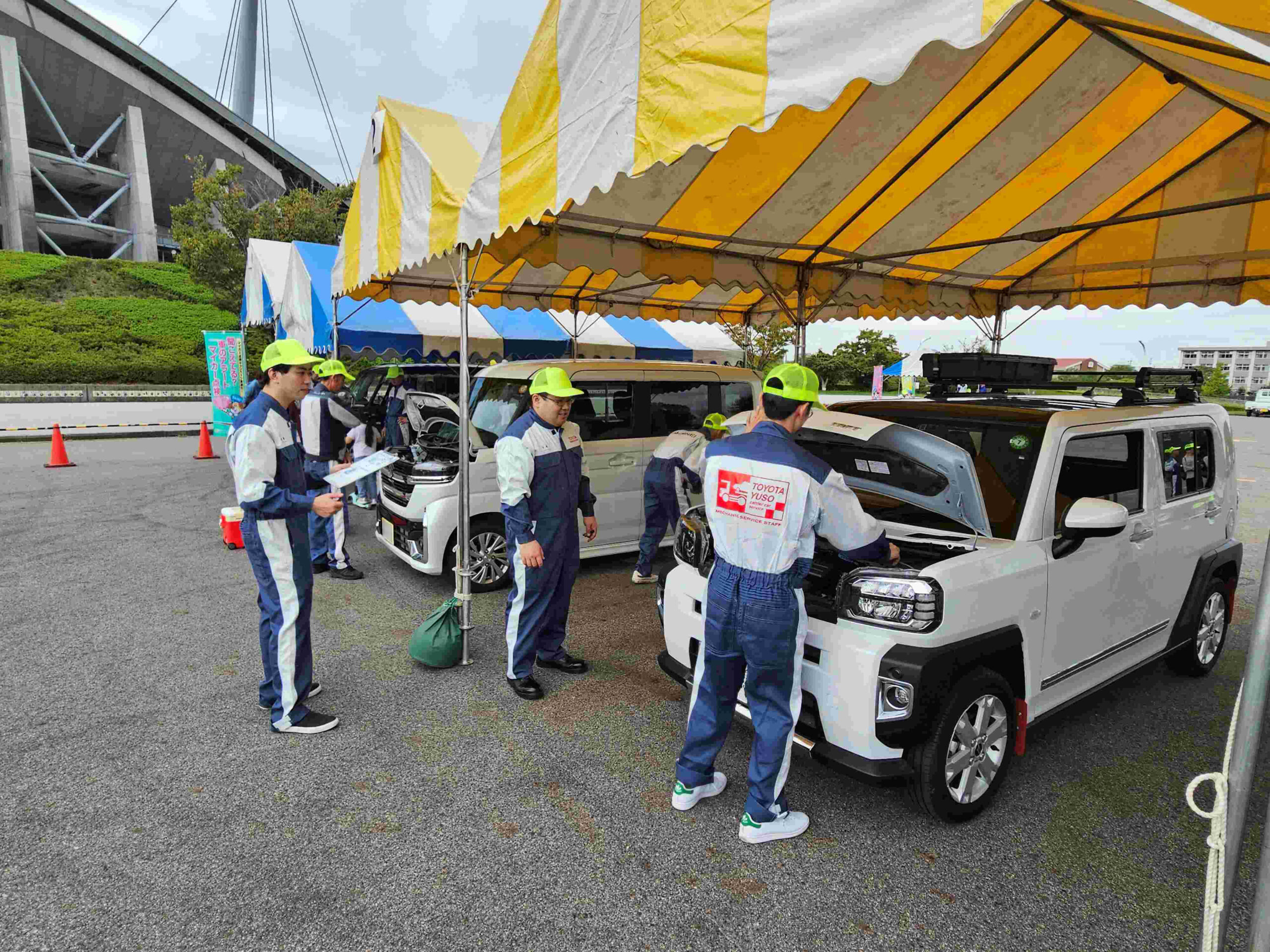 愛知県自動車整備振興会(川村保憲 会長)の豊田支部(杉浦直人 支部長)は10月18日、豊田スタジアム・多目的広場でマイカー無料点検(写真)を開催した。市の広報誌や会員によるPRの効果もあり、朝早くから多くの地元ユーザーが来場。