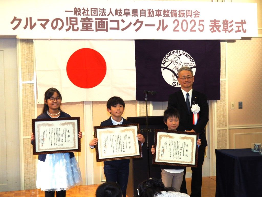 岐阜県自動車整備振興会(田口隆男 会長)は11月16日、岐阜市のホテルグランヴェール岐山で、県内小学生を対象にした「GASPA・クルマの児童画コンクール2025」の表彰式(写真)を開催した。