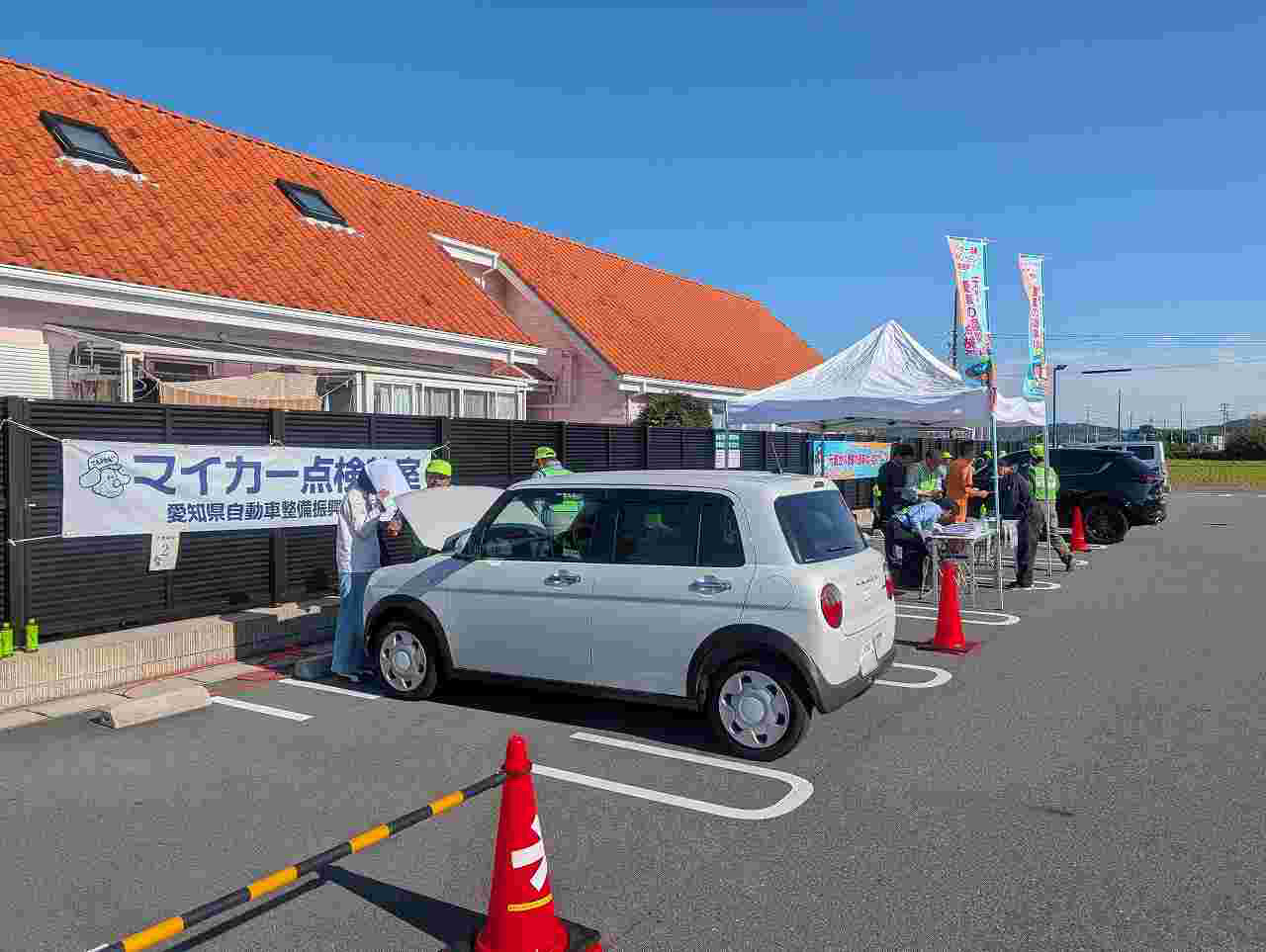 愛知県自動車整備振興会(川村保憲 会長)の西尾支部(青山誠一 支部長)は10月23日、西尾市のJA西三河「憩いの農園ファーマーズマーケット」でマイカー無料点検(写真)を実施した。