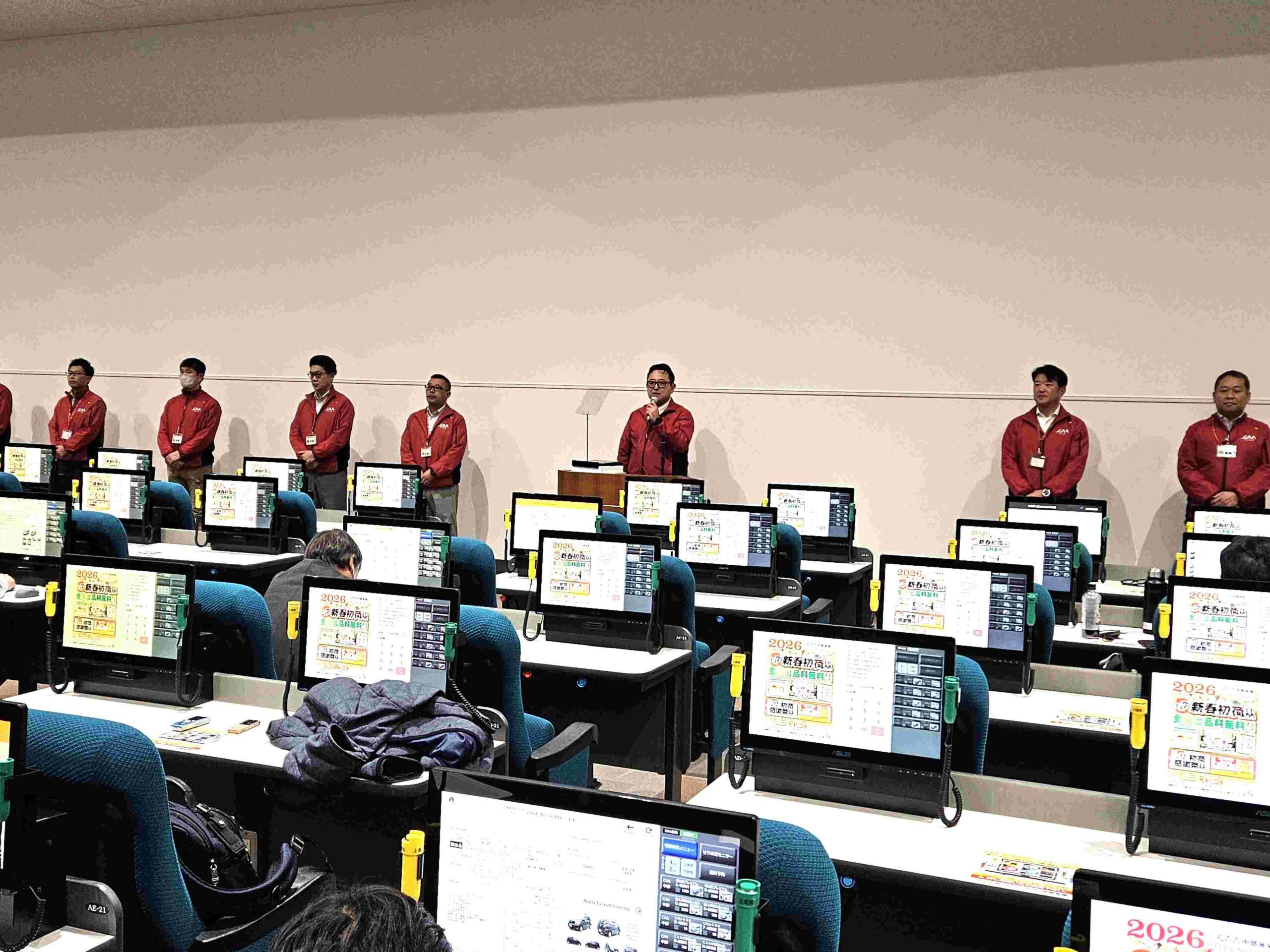 シーエーエー(CAA・斉藤啓太 社長)の中部会場(後藤竜也 会場長)は1月7日、「新春初荷オークション」(写真)を開催。出品5036台、成約が4069台、成約率は80・8%、台当り成約金額は90万1000円となった。