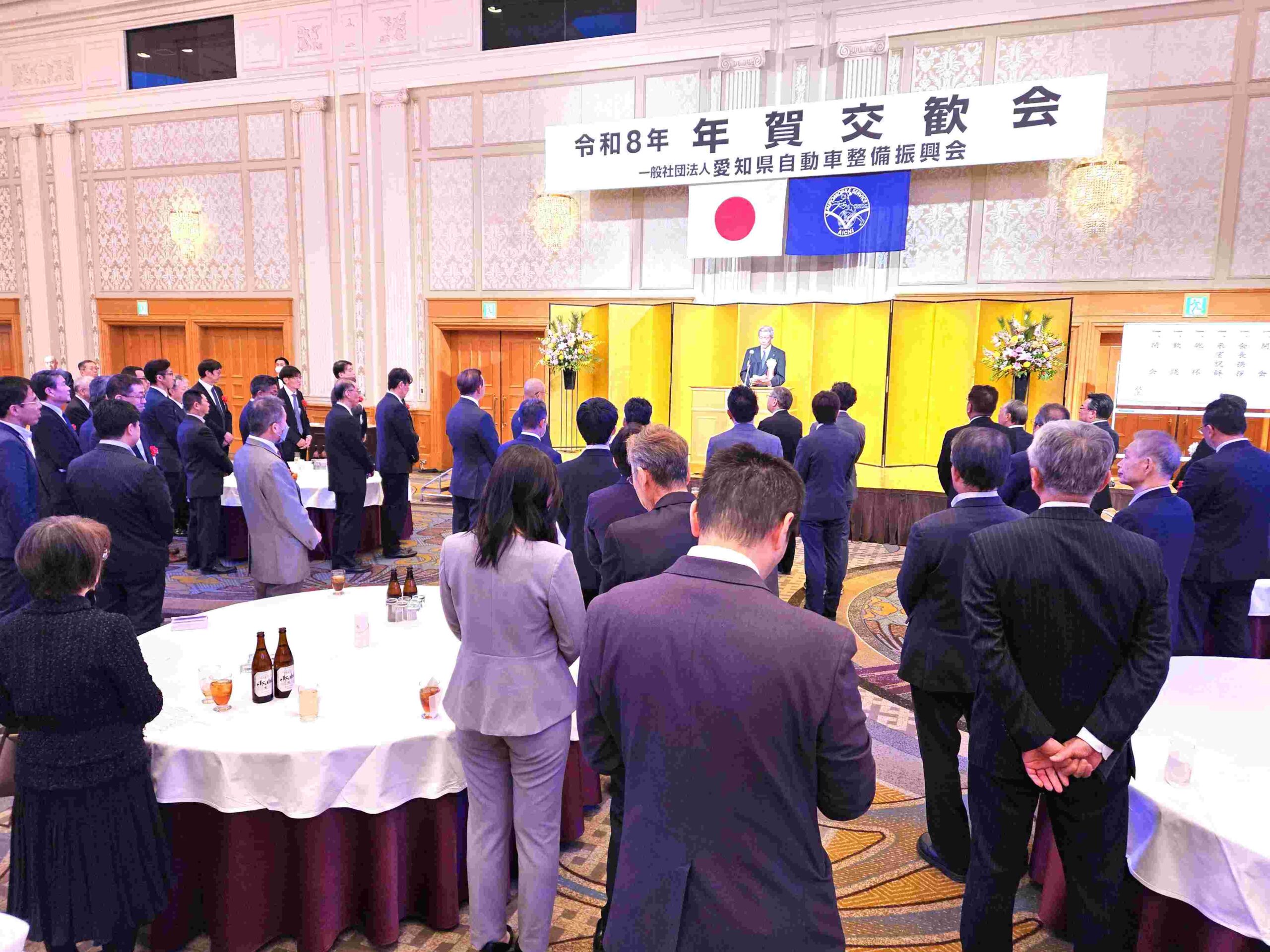 愛知県自動車整備振興会(川村保憲 会長)は1月23日、名古屋駅前の名古屋マリオットアソシアホテルで令和8年の年賀交歓会を開催した。今回も来賓と会員ら約400人が参加し、新年を祝うとともに、山積する業界課題に取り組む決意を新たにし、団結と協調を確認した。