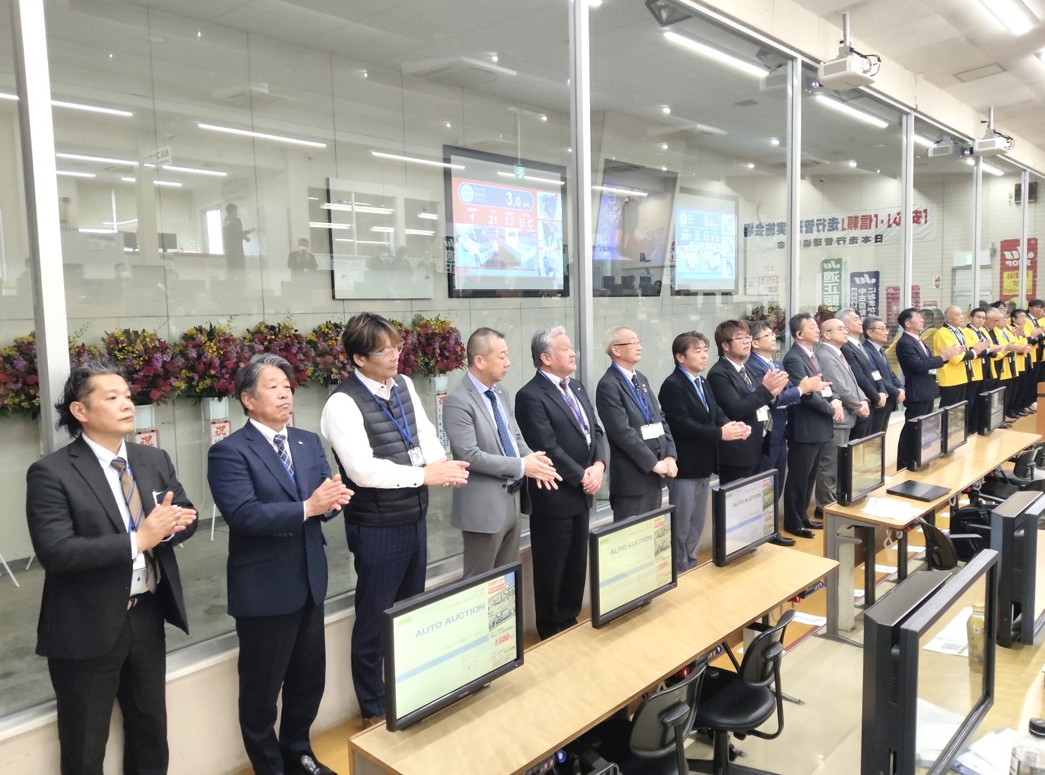 三重県中古自動車販売商工組合(JU三重、奥村悦治 理事長)は2月2日、津市の割烹ヤマニで「常設会場開設37周年記念ジャンボAA~お食事会~」を開催し、組合員や来賓など37人が出席。翌3日には、JU三重オークション会場で37周年記念ジャンボAA(写真)を実施し、会場には1192台の出品車両が集まり、活発なセリが展開された。