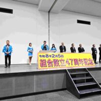 三重県中古自動車販売商工組合(JU三重、奥村悦治 理事長)は2月2日、津市の割烹ヤマニで「常設会場開設37周年記念ジャンボAA~お食事会~」を開催し、組合員や来賓など37人が出席。翌3日には、JU三重オークション会場で37周年記念ジャンボAA(写真)を実施し、会場には1192台の出品車両が集まり、活発なセリが展開された。