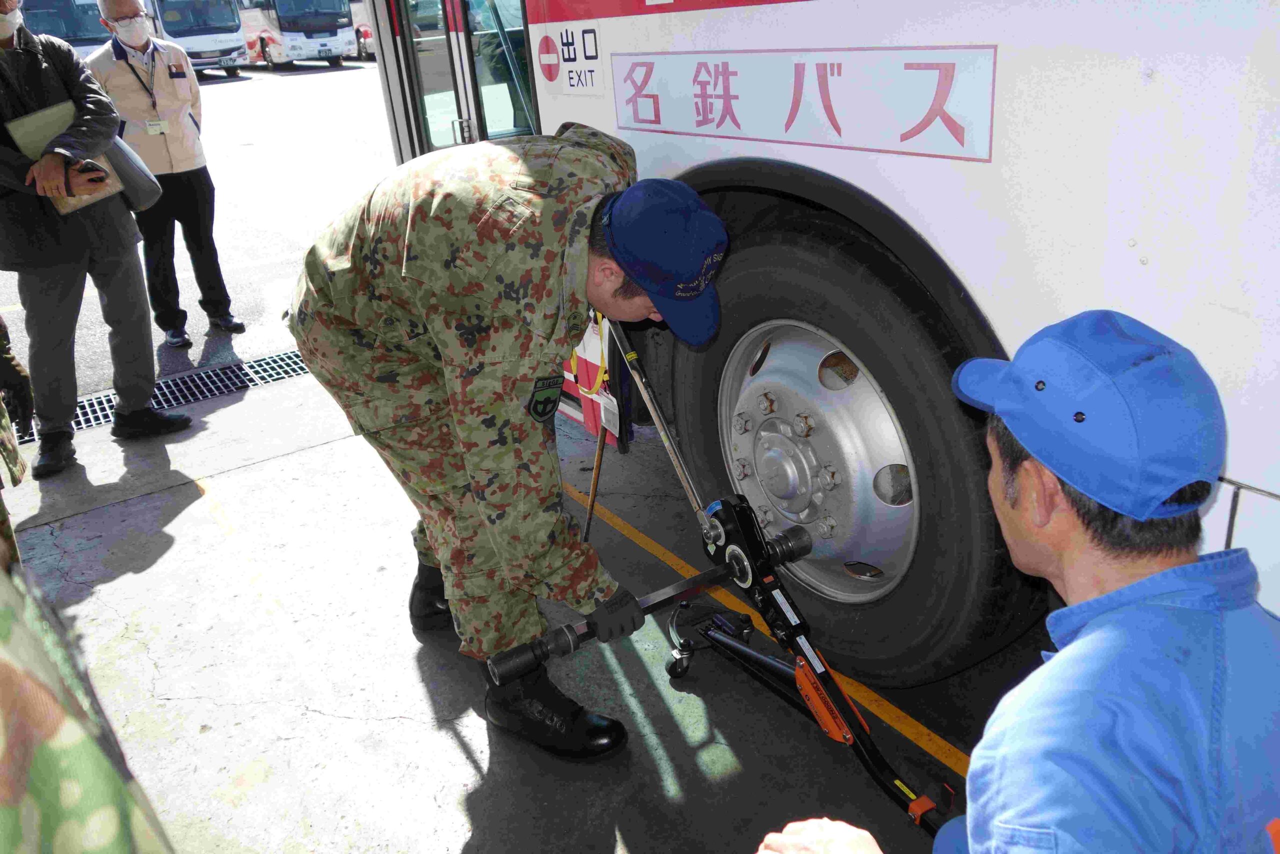 中部運輸局は2月26日、津島市の名鉄バス津島営業所で、退職予定の自衛官を対象とした「バス・タクシー・自動車整備業界体験会」(写真)を開催した。自衛隊愛知地方協力本部との共催で、愛知県バス協会、愛知県タクシー協会、名古屋タクシー協会、愛知県自動車整備振興会が協力。当日は自衛官28人が参加し、各業界の仕事を体験しながら理解を深めた。