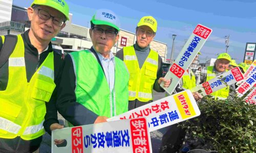 愛整振・春日井市支部が国道19号線沿いで事故防止をアピール