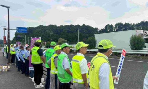 愛整振・春日井支部が国道19号・内津峠パーキングエリアで交通安全の広報活動