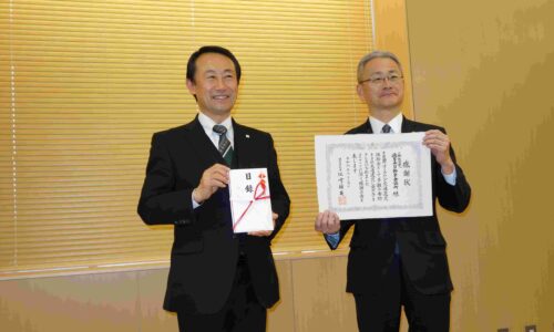 岐阜県自動車会議所(田口隆男 会長)は2月24日、岐阜県交通遺児激励金事業への寄付に対し、岐阜県知事感謝状を受領した。贈呈式は岐阜県庁で行われ、江崎禎英…